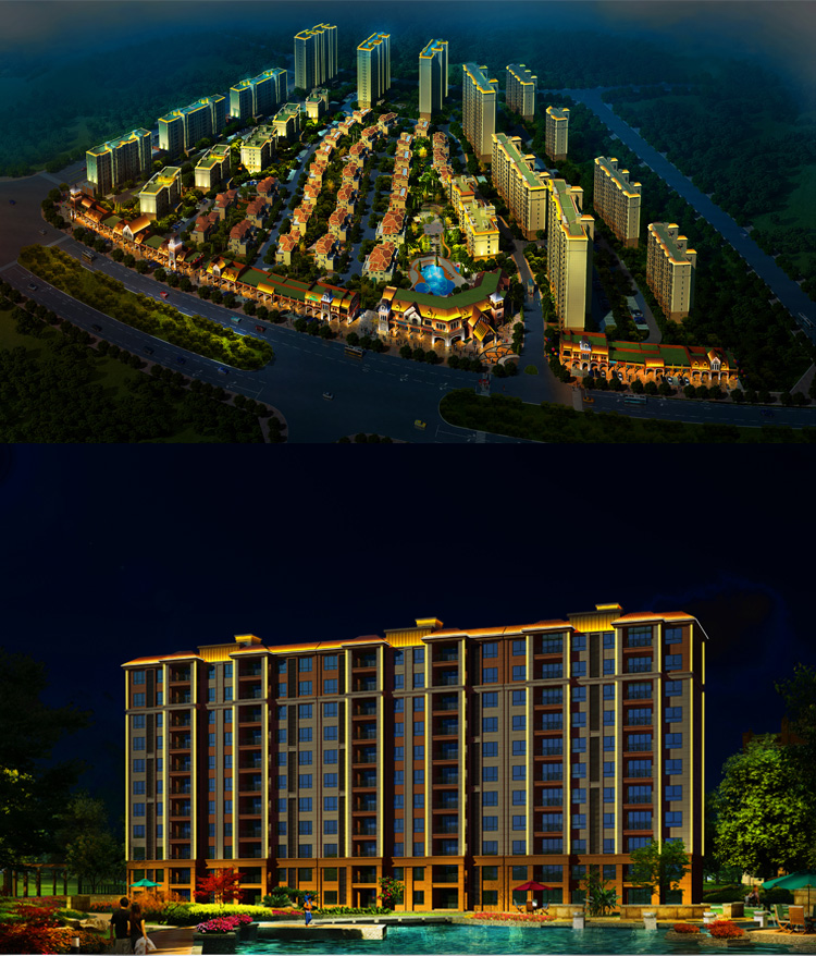 碧桂園小區(qū)建筑泛光照明,建筑輪廓照明和局部重點照明進行建筑環(huán)境景觀的在塑造,設(shè)計中舍棄了景觀中繁瑣細(xì)節(jié)的表現(xiàn),將較直觀的景觀以大氣的燈光渲染出來,營造大氣的燈光氛圍,以節(jié)能而質(zhì)樸的燈光為市民營造一個優(yōu)美高雅的夜間環(huán)境,為韓城夜色添了一道亮麗風(fēng)景。打造出綠色的主題思想。